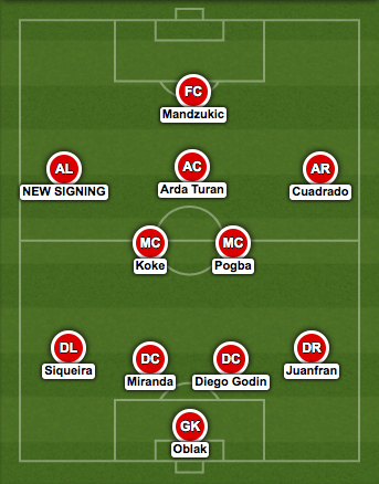 Team: (3-5-2) - Oblak, Alderweireld, Godin, Miranda, Guilavogui, Koke, Pogba, Juanfran, Fischer, Leo, Manduzkic