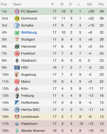 Another game where Wolfsburg will be looking to get back at Leverkusen after their tough loss in the German Cup. Leverkusen have been struggling big time in the league and a win here will hopefully get them going again and get the season back on track, but a loss may cost their manager his career. Just 18minutes into the game, a great tackle on Bender by Ricardo Rodriguez allowed Ivan Perisic to run into the box and get a shot on goal, scoring and giving Wolfsburg the lead(1-0). This would mean that for the second time this year, Wolfsburg would go into the half with a lead over Leverkusen. The rest of the game was action less, until the 90th minute when Wolfsburg got a corner and the ball fell to Aaron Hunt, who scored another goal(2-0). This game also meant that Timo Horn has gone over 480 minutes without conceding a goal.