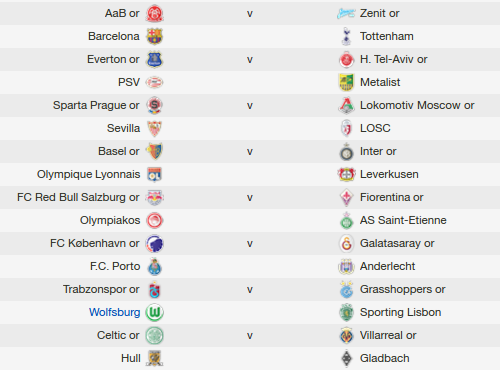 A very interesting draw, the largest games will probably be Everton vs PSV and Tottenham vs Zenit. But it gets harder for the top teams when it reaches the second round, we may see Barcelona vs Tottenham or Wolfsburg vs Sporting Lisbon. All of which will be sell out games and highly contested.