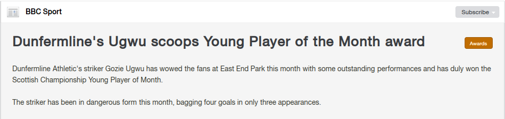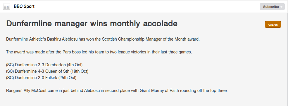 Dunfermline manager Bashiru Alebiosu as he won the monthly accolade he quotes "It was an amazing feeling to win this award i hope to shine and win many more"