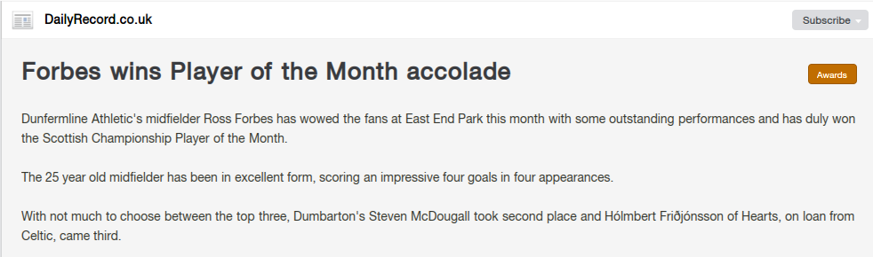 The match that stands out the most in this month is our 5-1 league win over Raith with Ross Forbes picking up a Hatt-trick