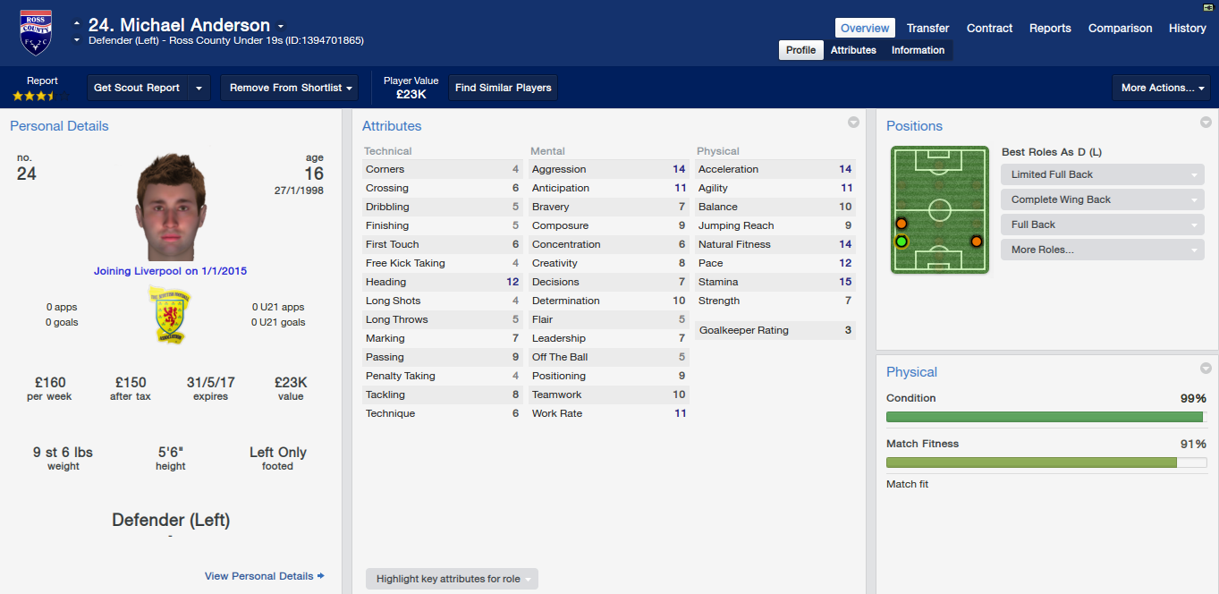 The young left-back has a lot of work to do to oust Jack Robinson from his starting left-back slot, and with Brad Smith also snapping at his heels, competition will be stiff. The 17 year old Scot has some tricks up his sleeve though: solid in the tackle, and a natural leader, his pace and work rate make him a threat when attacking, as well as difficult to pass when he is defending his penalty area. Although not the most skillful, an impressive range of passing and creativity will give his team-mates another outlet for their attacks, and may prove invaluable to the youngster as he tries to break into the side.