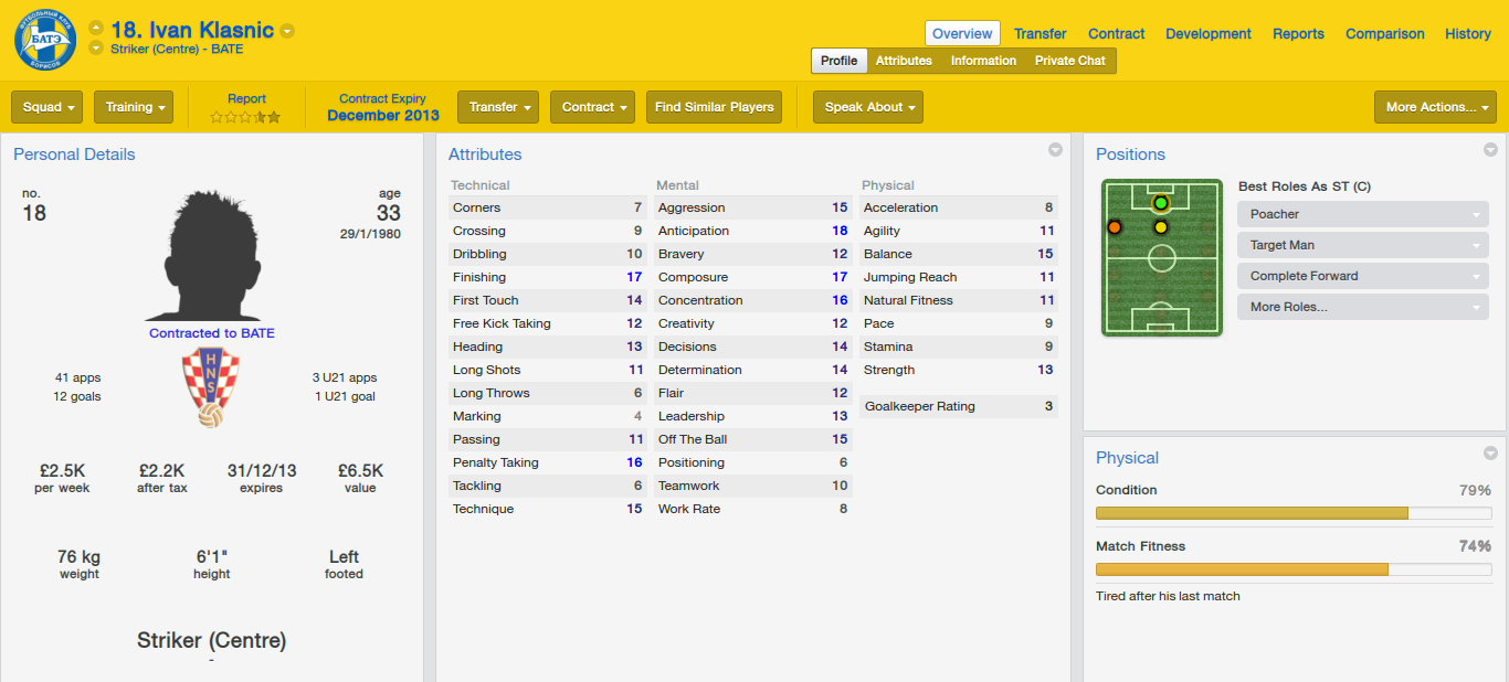 Ivan Klasnic is a tall and prolific striker. He has lost the speed in which he once had, however still has the finishing ability in which will see him do good at BATE.