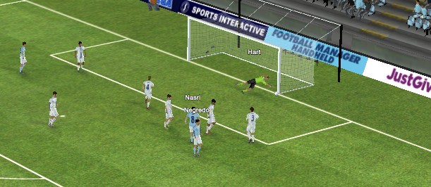 Yet another corner for Man City, this time an attempted lob by Touré from the edge of the box forced an acrobatic save from Hart, however the stranded keeper had no time to recover as the ball fell to Dzeko who couldn't miss from three yards out. Was a come back on the cards?