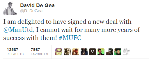 The Spanish shot-stopper has been in fine form for United so far this season, and with interest gathering from PSG and Real Madrid, United wanted to tied De Gea down to a new contract as soon as possible to try and warn those clubs off the 24 year old. De Gea was very happy in signing the new deal, posting on his official twitter page that he was delighted to be staying at the club for 'another four years'.