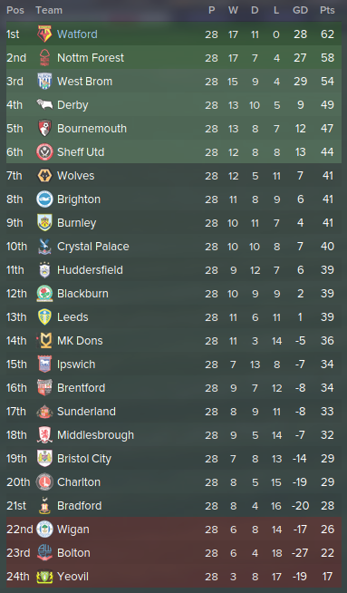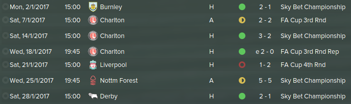 "It was an extremely tough month, but we remained undefeated in the league after a shocking performance in the 'biggest match of the season'. We were winning 5 fucking 1 and we threw it away, we panicked. I'm not too fussed about losing to Liverpool as the FA Cup wasn't my target this season, but I am quite happy about holding our own against Charlton, three games in a row, defeating them twice at home. Nottingham Forest dropped points while we defeated Derby, making us 4 points clear of top."