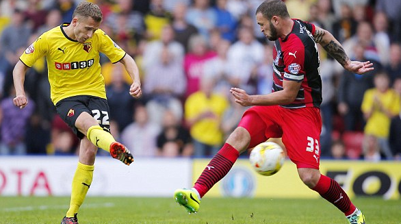 3' - Signori cuts out the pass as he heads it on. But Dier intercepted the pass and holds up the ball. Dier lost out from the tackle from Murray, Murray plays the ball through to Deeney. Deeney passed to Diego Fabbrini. Diego Fabbrini with a hopeful shot.. GOAL! Watford strikes first.