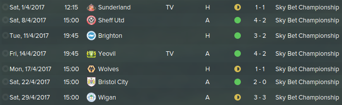 After a very long and quite intense last month of the season we were able to remain undefeated in the Sky Bet Championship. Televised matches against Sunderland respectively finished 1-1 and a 4-2 victory versus Yeovil. Sheffield United got completely dominated in the match and lost 4-2. Brighton lost to us 3-2 in a classic clash. Wolves were possibly our hardest opponent of the month due to it being very limited in chances. Bristol City was a solid win of 2-0. Wigan was an all-out-match, Wigan needed to exit the relegation zone and desperately needed this to go there way. Unfortunately they conceded an own goal in 90+3 minute.