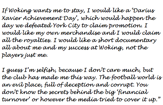 Woking boss Darius Xavier has been released from his reign at Kingfield Stadium as a manager. During his time with The Cardinals, Xavier's team lifted the English FA Trophy in 2015, secured promotion in the Vanarama Conference in 2015 and finished runners-up in the Sky Bet League 2.