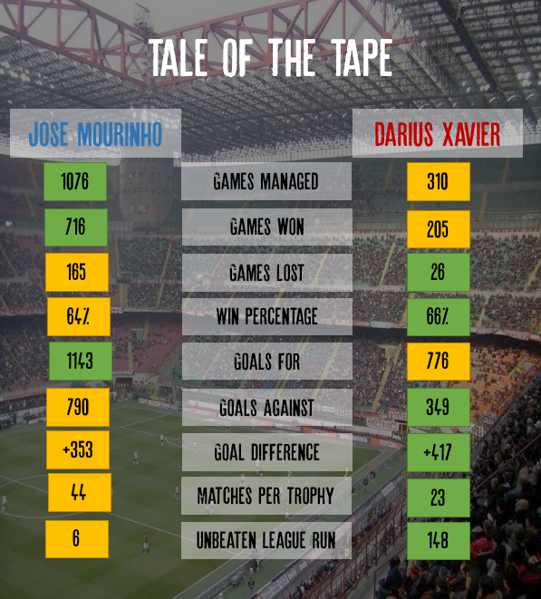 Jose Mourinho - "Last year, I told every single person that listened that I needed to win that match, and I failed. People like Darius Xavier, does not know what that does to a man Linkerer. It makes you feel worthless. Darius Xavier was responsible for my collapse. An entire year of my existence was destroyed. Them matches sent my life into a tail-spin, both professionally and personally. Professionally, we finished 5th this season and personally, it affected my relationship with my wife, we were divorced shortly after the defeat. It's because I could not get over my obsession with the fact that I failed. My opening statement is simple. I have accomplished every single goal in my entire career, except you, Darius Xavier. This is more than just a UEFA title to me, this is a shot at redemption. I have been gifted a second chance to right the biggest wrong of my life."