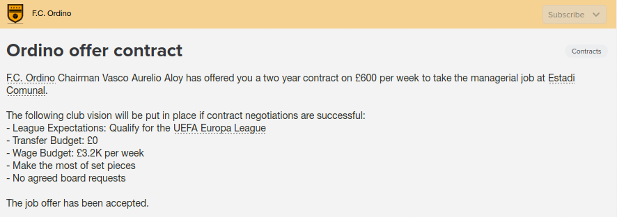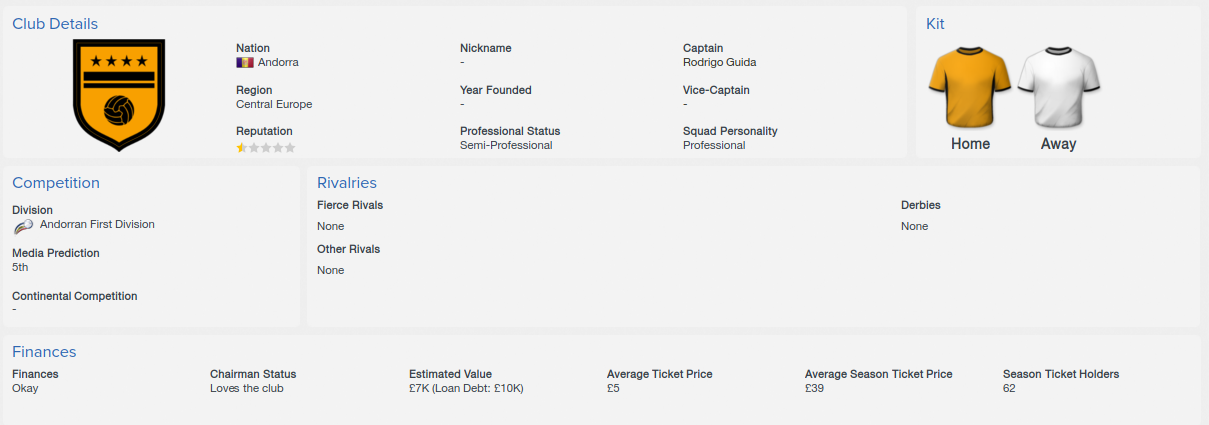 Yes! We start the challenge with FC Ordino from Andorra, pretty hard challenge yes but it was the first club and I wanted to start as soon as I could! This is a pretty hard team not with the best facilities and finances but with my tactics and help we will ace this league!