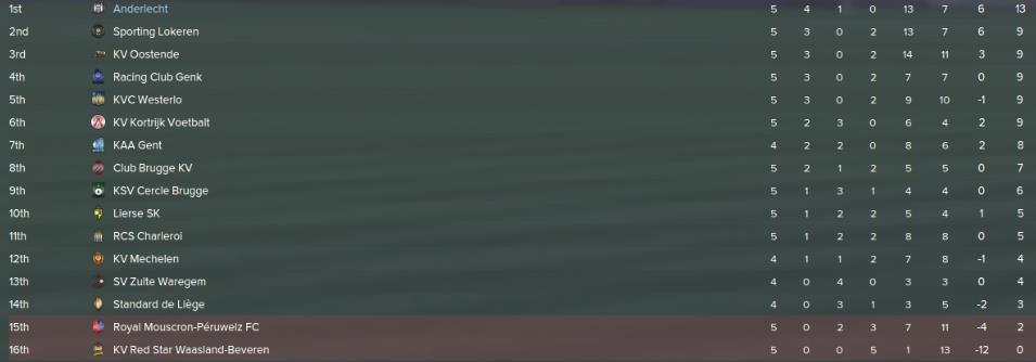 Standart Liege is fighting at the relegation zone at the moment as they only have 10 points and are only 3 points before the first relegatino place.
