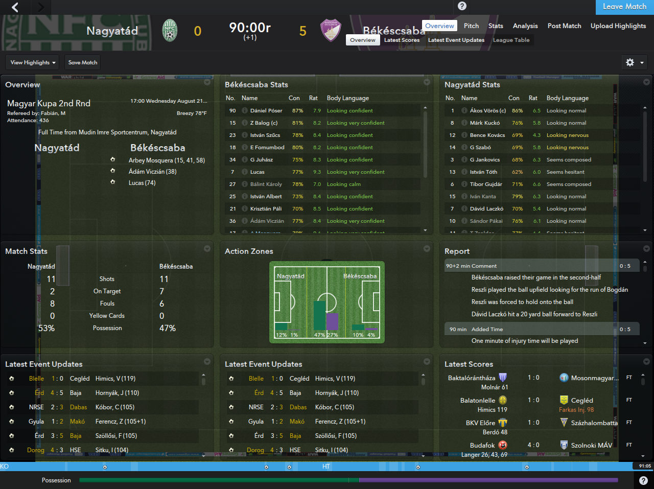 - 58th minute: After a spell of dominance by Nagyatad that resulted in some near-misses, Mosquera roars back with his third goal for the hat trick.