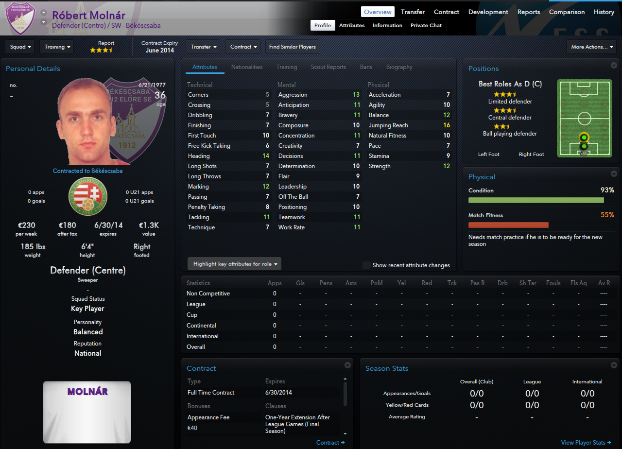 Bekescsaba continues to load up on center backs by signing 36 year old Hungarian Robert Molnar. He is basically the "break in case of emergency" option, and hopefully Bekescsaba won't have to trigger his automatic extension clause.