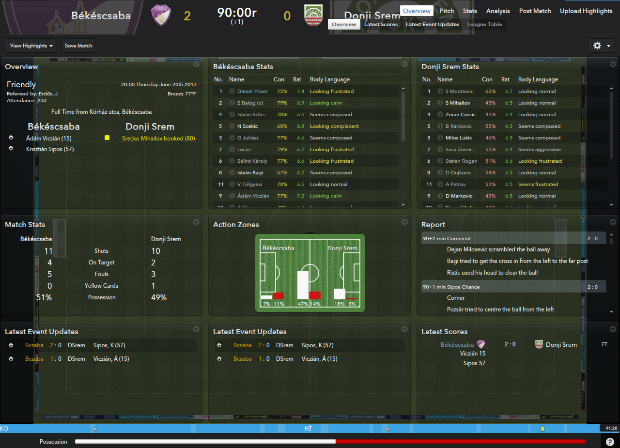 AS you can probably tell by me forcing a goalkeeper into a center back's role, I need to sign one or two more center backs if I can. I didn't have enough cover for this matchup and I need to keep my players fresh. We did an okay job of creating chances, we just need to finish them when we get them. Skecic did an okay job of playing center back, but he needs more playing time to get used to the role.