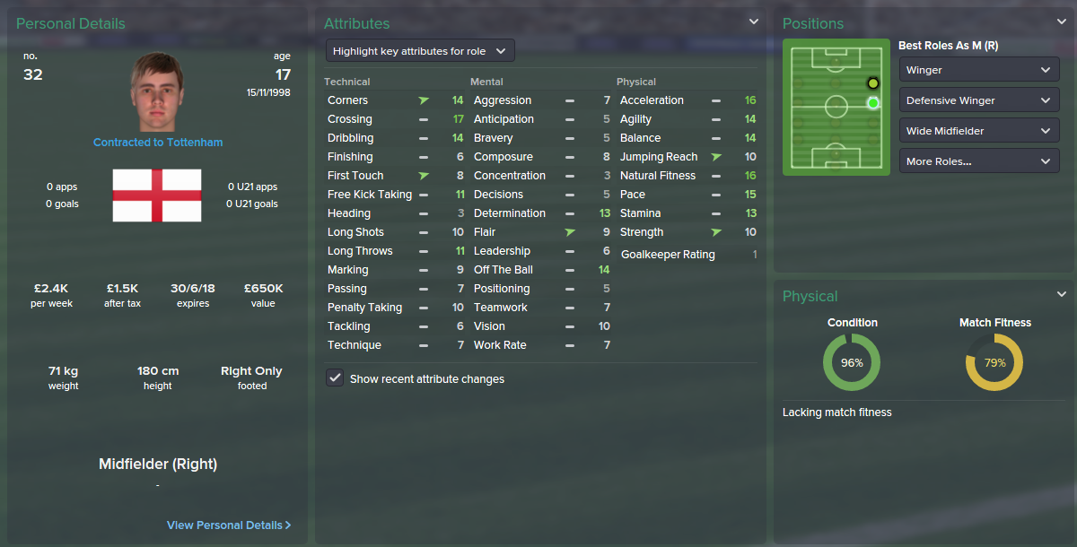 Signed from Wolves for £400k, Ryder has massive potential as a striker. He caught Spurs' eye on trial day, when they sent their scouts around the nation, looking for the best talent. Technically talented, and quick, Ryder has the makings of an excellent striker, and will be looking to make his mark at the club.