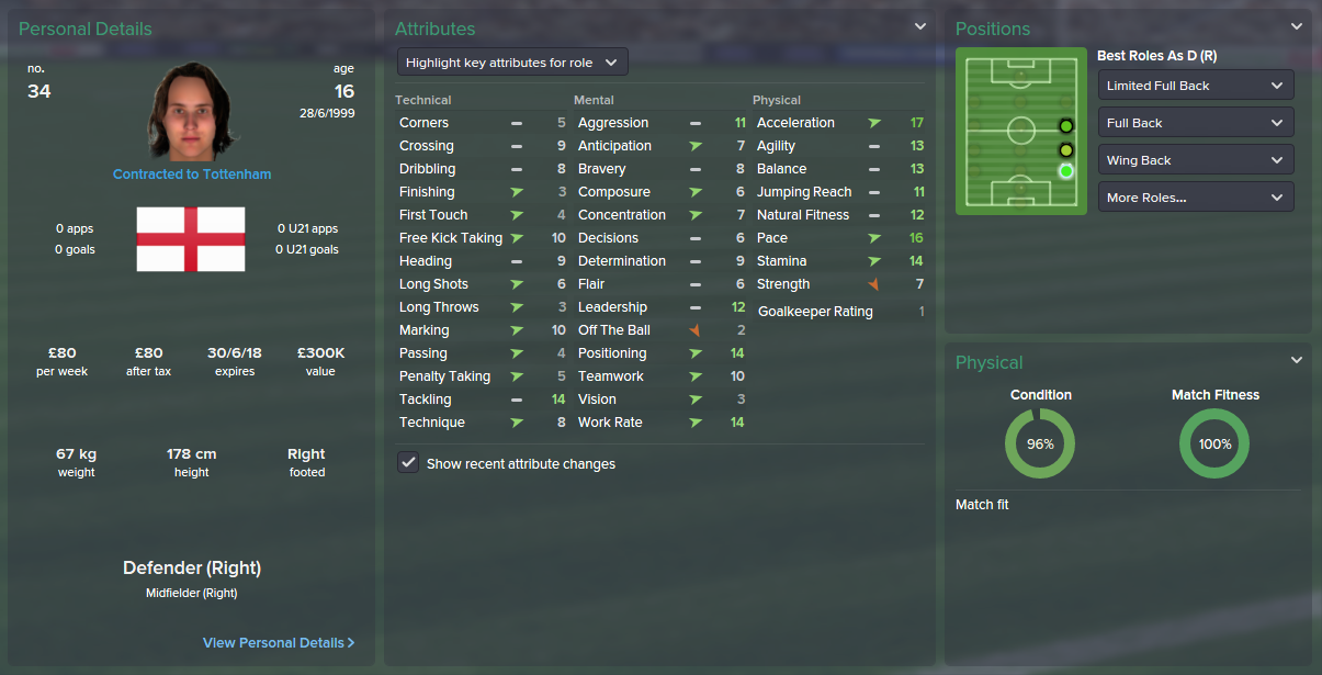 Rolfe had a trial with Crystal Palace before West Brom, but he impressed the Spurs Scouting team with his pace and marking ability, and that was enough to land him a professional contract at the club. Hard working and solid in the tackle, Rolfe will have to work hard, but could really make something of himself in London.