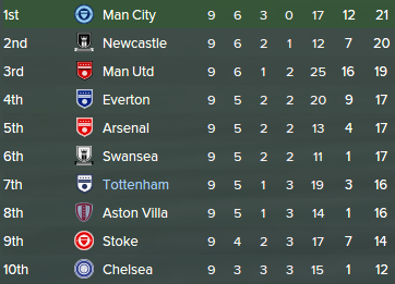 In the next two games, Spurs were again brilliant, sweeping aside both West Ham and Crystal Palace to keep their footing near the top of the table. Harry Kane and Roberto Soldado were in great form against Spurs' lower league opponents, but it all came unstuck against Everton, who are also challenging for a European spot. Spurs were 2-0 up inside half an hour, and looking good, but they lost concentration, and Everton fought their way back into contention before half-time, before breaking Spurs in the second half to win 4-2.