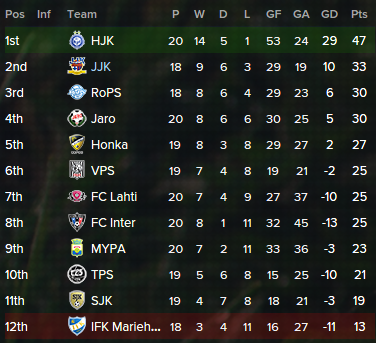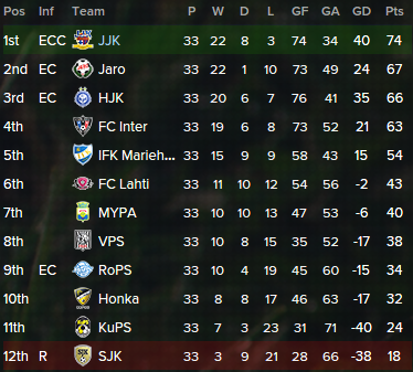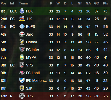 "It was really quite terrible from the start. We were lucky to reach the playoffs as the best third-placed team out of the pack. The game against HJK was actually a lot better. RRegardless we didn't deserve to play in the playoffs." - Assistant Manager, Roni Lindroos