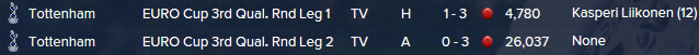 "Everything went as expected. Tottenham dominated both games and we were lucky to have the lead for a few minutes through Liikonen's goal. I feel we were competitive enough and losing 6-1 on aggregate is not too bad against a side like Tottenham." - Mr. Shroom