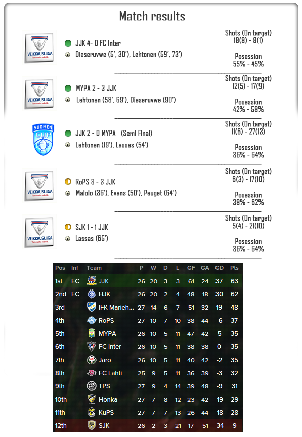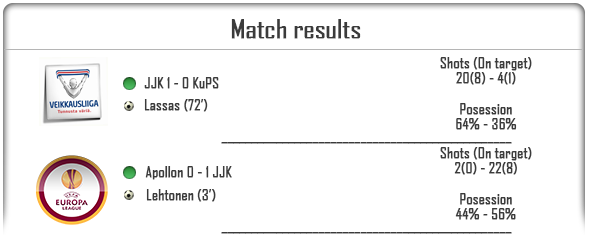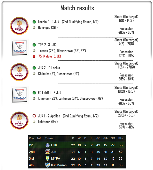 JJK have continued their games in the Finnish Premier League as well as moving forward in the Europa League qualifying rounds. How did they do?