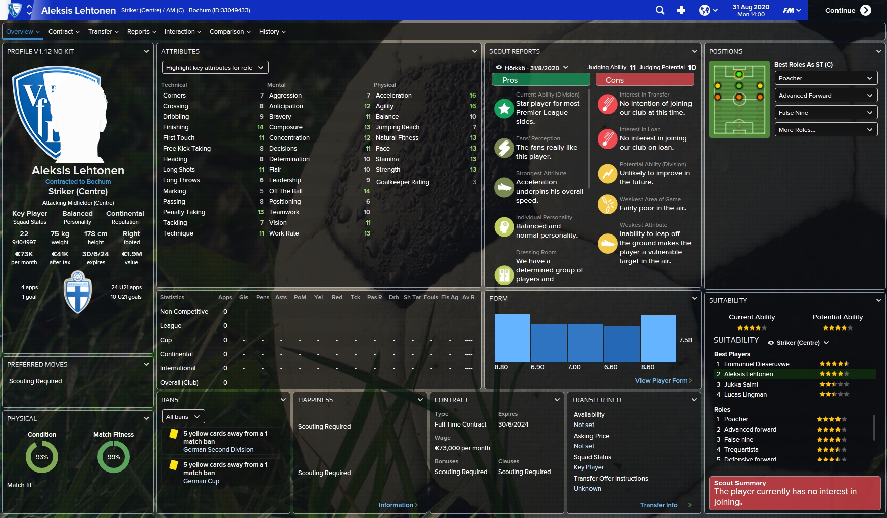 Aleksis Lehtonen has been looking for a move to a bigger club for quite some time now and has decided to join 2.Bidnesliga side Bochum for a fee of 1.1 million, which could go up to 1.8 million.
