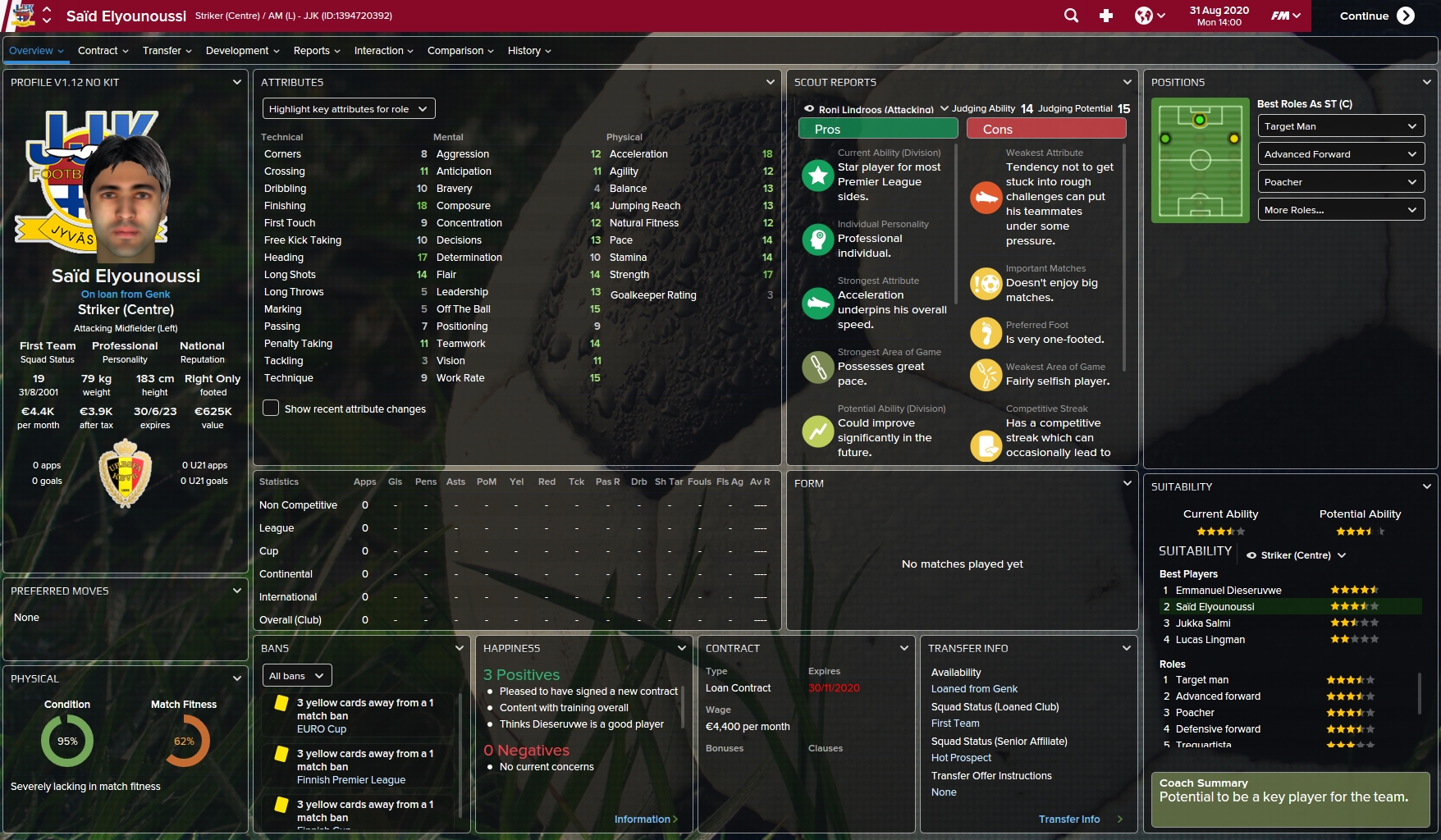 There was a real buzz when JJK announced their biggest loan deal yet, hot prospect Said Elyonoussi, has joined up with the squad from Genk. He should be a real force and definately the man to replace Lehtonen!