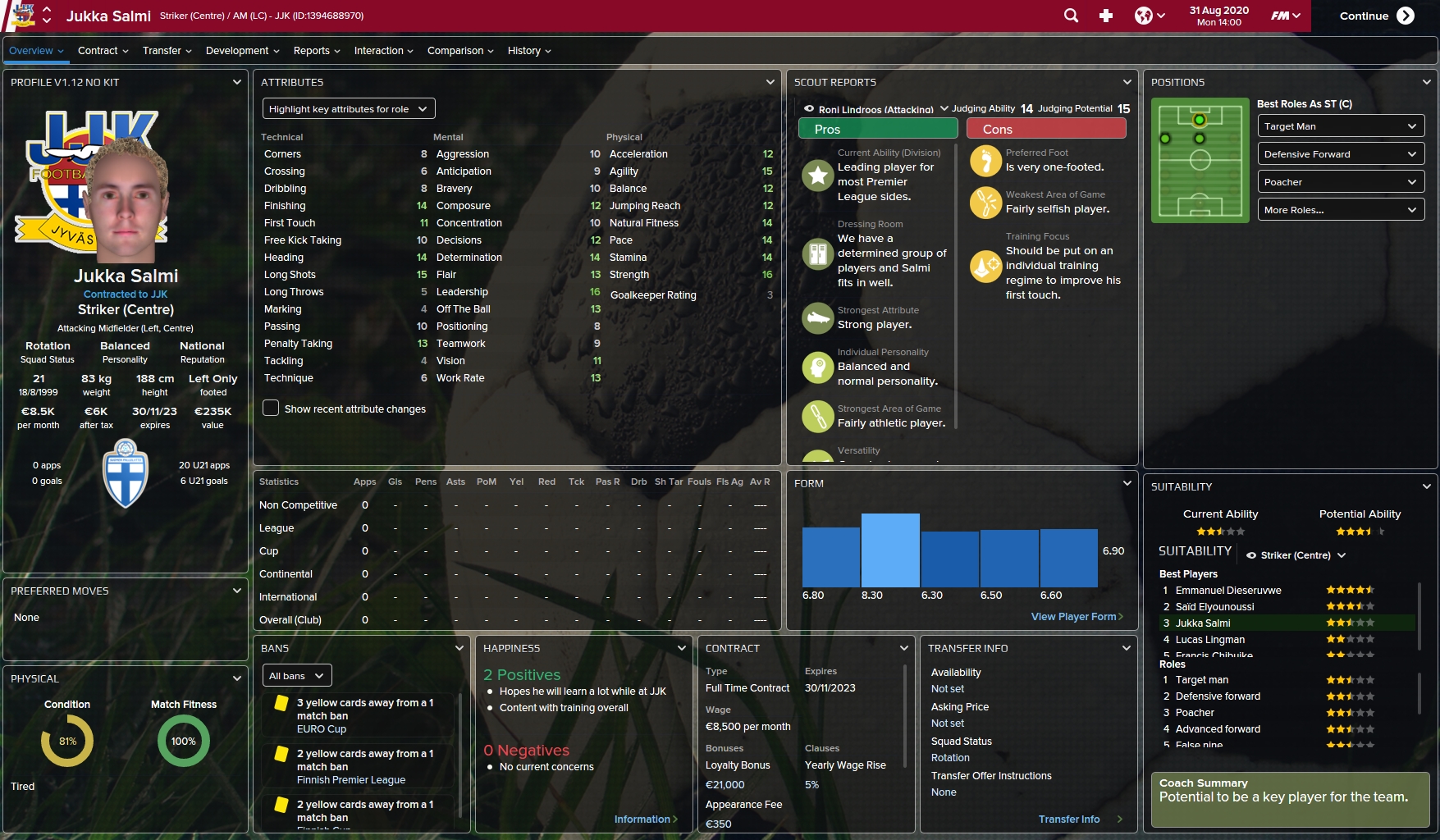 JJK Sign HJK striker Jukka Salmi for 375K! The Finnish striker has been bagging in goals even though he's only 21-years-old. Salmi leaving HJK will surealy weaken their squad and maybe give JJK the decisive edge in the title battle.
