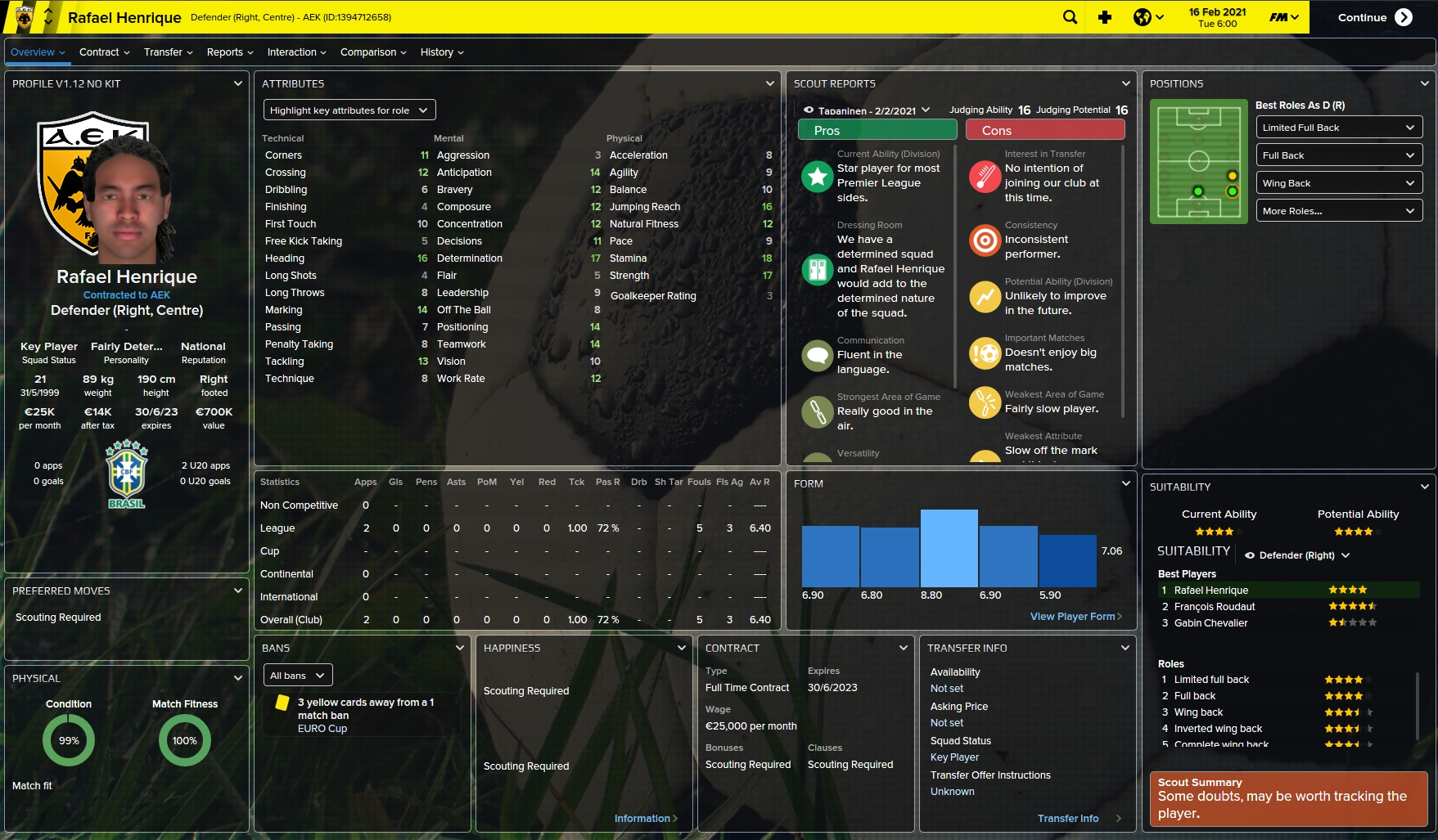 The biggest, and most unexpedted, loss has been the transfer of centerback Rafael Henrique to AEK Athens as the Greek side triggered the Brazilians release clause of just 205 000€.