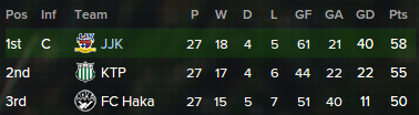 The team has been struggling with quite a few injuries. The results have been kind of on and off. Especially the 1-2 loss at home agaist Viikingit was a bitter blow to the title hopes of the squad.