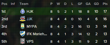 "The start to the season has been absolytely incredible. We are the only team that has not lost in the first eight games. The large amount of draws is something to attend to but otherwise we are in incredible form!" - Assistant Manager, Kalle Turunen