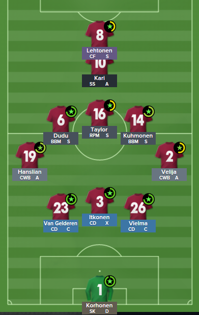 "This formation gives us the wanted safety in defense while also giving us the much needed options going forward." - Assistant Manager, Kalle Turunen
