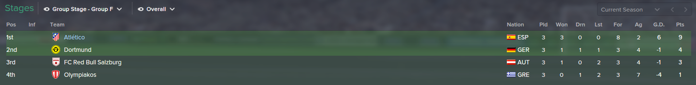 The second half was completely dominated by Schuster's players as they shut Salzburg from shooting once and they have achieved a win too with Tiago's goal coming two minutes after he subsituted the first goalscorer, Koke, when he shot in a free-kick cross of Griezmann who recorded his second assist in the game. And the last goal came as a great team play was finished by a close range finish of the Argentinian wonderkid, Ángel Correa.