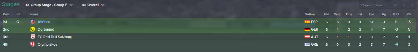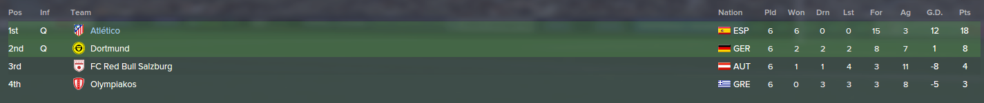 The victory has secured the qualify of Atlético Madrid to the knockout round from the first place in Champions League Group F and disappointing Borussia Dortmund battles Red Bull Salzburg for the second place, with the last game dictates the second qualifiers.