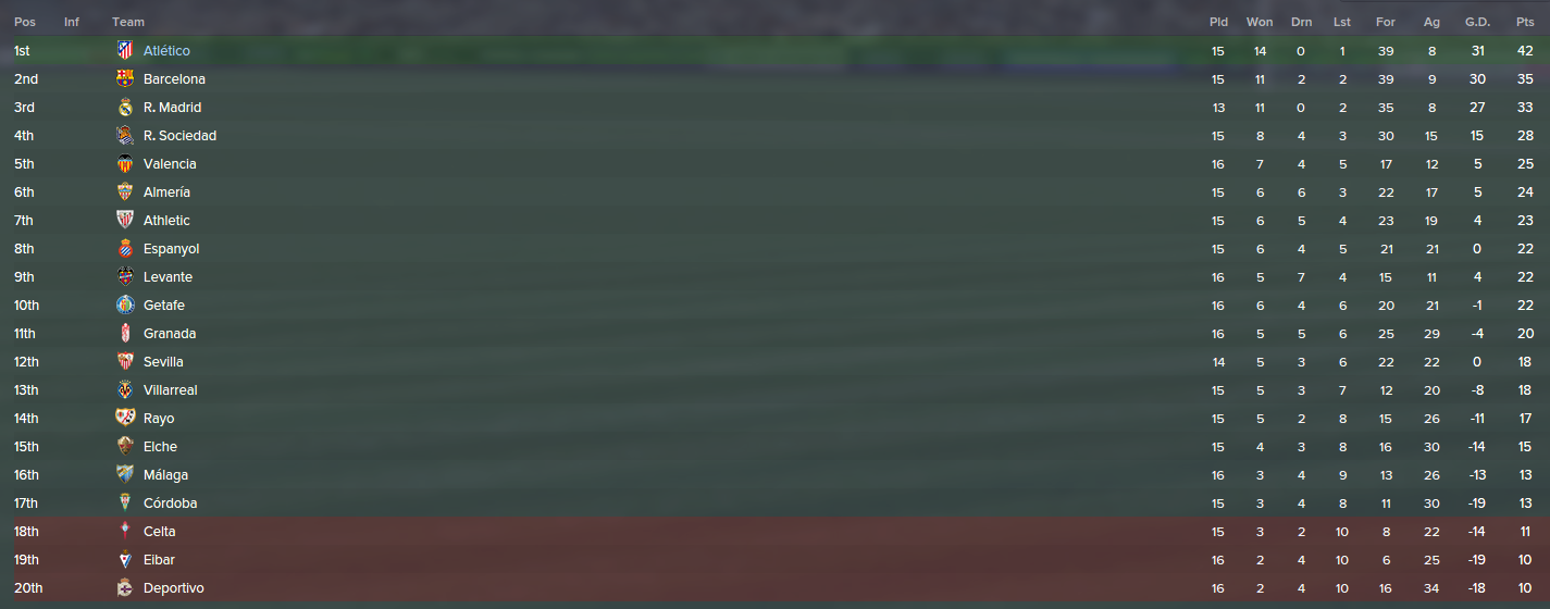 The victory against Deportivo La Coruña has finished November as a perfect month and put the winning streak on twenty games, it is an incredible achievement and surpassed the club's best season start ever in the debut season of Bernd Schuster.