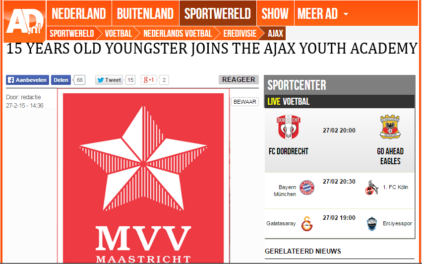 "His name is Thom Senden, he's 15 years old and plays for MVV Maastricht"