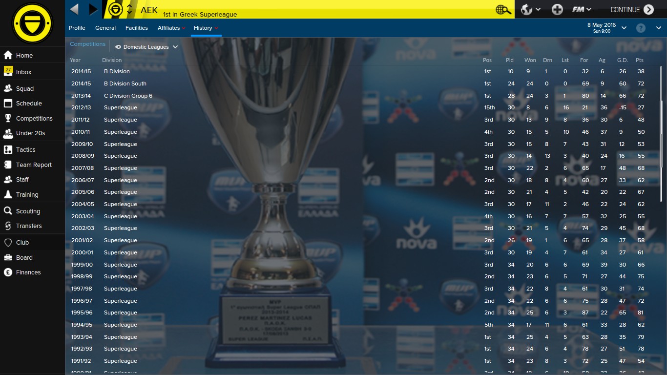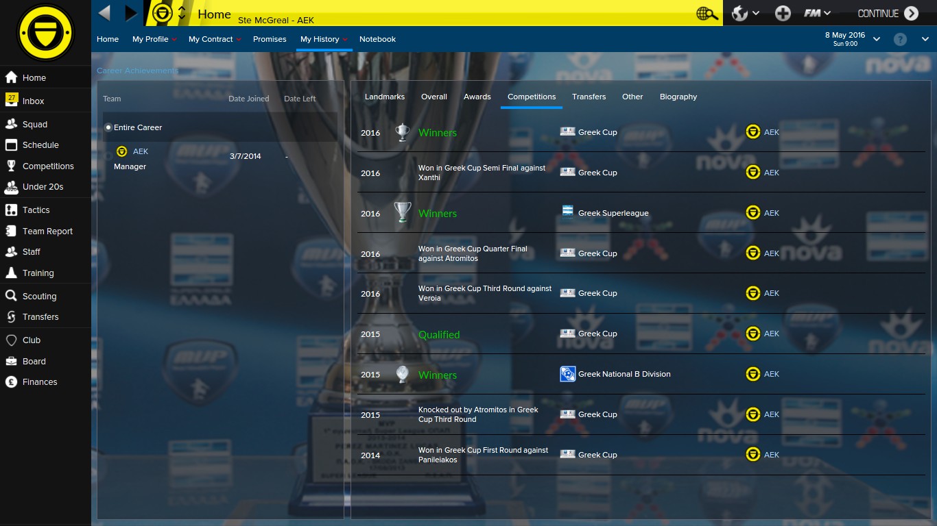 Finished the 2 seasons with AEK Athens. here's my screenshots.