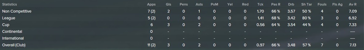 25 appearances, 2 goals, 7 assists & 5 player of the match awards in all "non-competitive" matches for an average rating of 7.27. Not a bad return in my book.