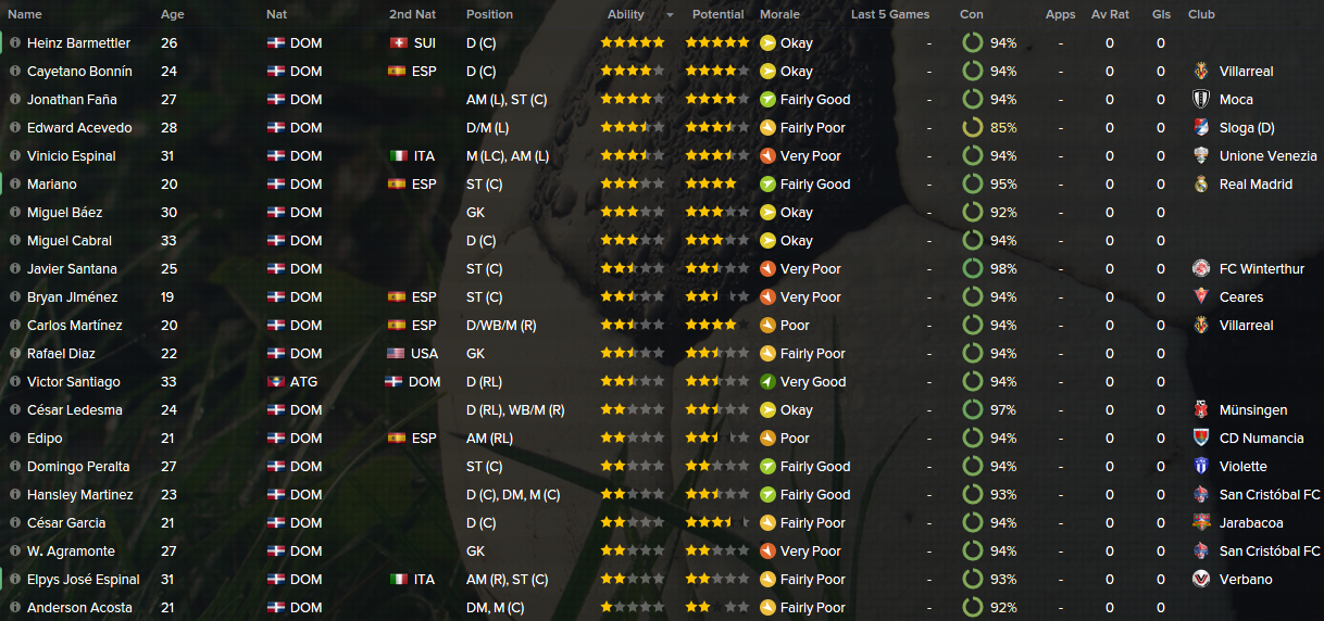 DOMINICAN REPUBLIC (4-1-2-2-1): Diaz, Acevedo, Bonnin, Barmettier, Ledesma, Martinez, Acosta, Espinal, Edipo, Faña, Mariano