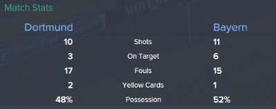 Bayern had many more shots on target but too many were from a long distance too trouble Bernd Leno all that much. They also had slightly more possession, as Dortmund opted for a more conservative approach keeping the ball to themselves.