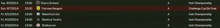 For the month of September all five matches will be played away from Eamonn Deacy Park.