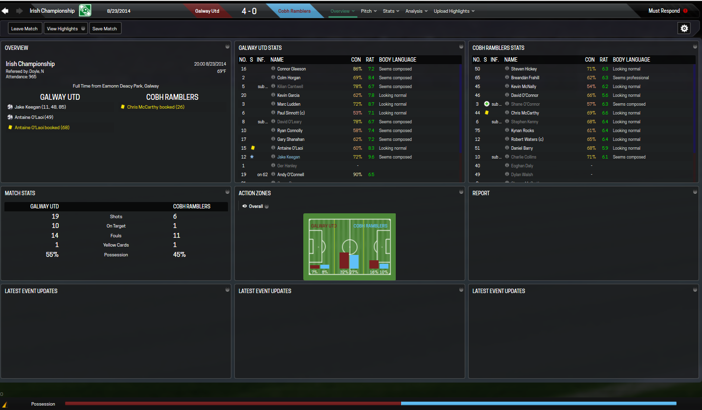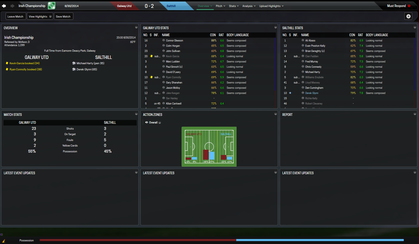 League wise the boys are currently in second place with 7 points just two points behind league leaders Waterford United. In the four matches Galway managed to finish the month with a 2-1-1 record. The best performance came against Cobh Ramblers when American Jake Keegan would score his first hatrick for the club. It was not all smiles though, on 30 August the team was defeated by Salthill by a score of 2-0 in from of 1,099 fans. Below are the match reports for each match this past month.