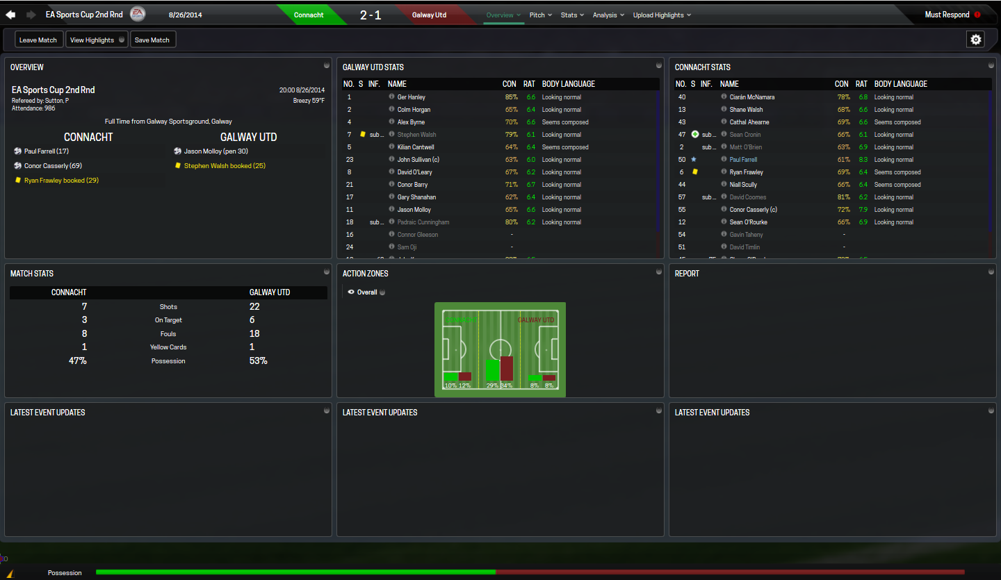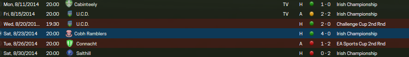 On the cup from we saw the team advance to the PADDY POWER FAI CHALLENGE CUP where they will be facing Fairview Rangers on 7 September at The Fairgreen. To get this far Galway faced UCD where they won by a score of 2-0 in front of 902 fans. it wasn't all celebratory in all cup competitions as O'Leary's troops lost to new rival and local side Connact Rugby. Connact Rugby is a new club that was formed by their parent club that plays in the Pro12 Rugby league.
