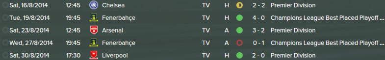 In the league, we opened with a close-run game against Chelsea, which I felt we probably deserved to win, but a 1-1 draw on opening day was touted in the media as a fair result. Our opening month didn't get any easier, as games followed against Arsenal and Liverpool, in a quick whip-around of our top 4 rivals. We came out on top though, with some supreme performances giving us narrow wins in both games.