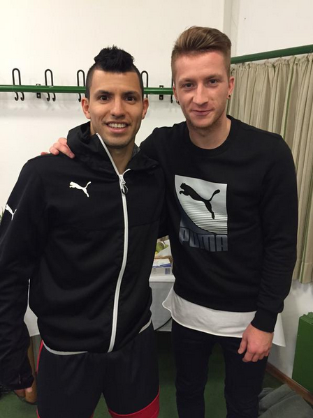 (Translation: ''No, well I did a little bit with Sergio Aguero in the last Puma photoshoot we did. I just asked him some things about the club and he asked me things about Dortmund. It wasn't really talking about me moving to Manchester City.'')