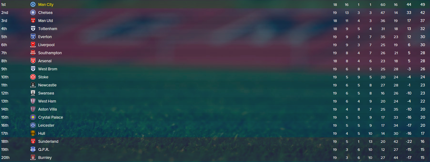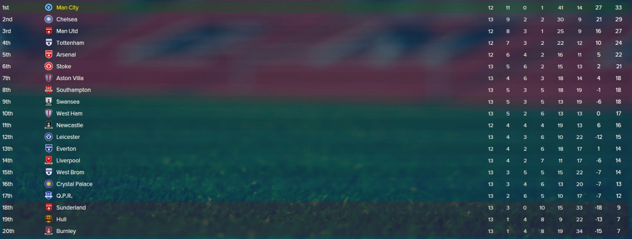 Going into this game both sets of fans will be desperate for a victory, which could be crucial at this stage. Going into the game City are leading United, as well as Chelsea, by three points. The champions recently surrendered their 100% league record in a 4-3 away loss to Southampton at the St. Mary's Stadium, meaning that United are the only club to remain undefeated, with Tottenham Hotspurs losing to the Red Devils 3-1 at Old Trafford and Chelsea losing to both Manchester City and Arsenal 1-0.