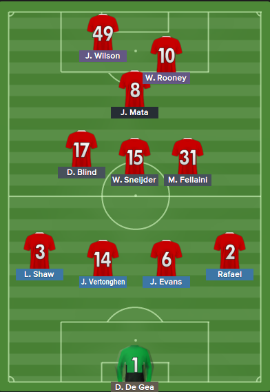 United should start with their usually narrow 4-3-1-2 with a rather defensive midfield to set them up for counter attacks. Robin Van Persie will probably start from the bench, opening the door for youngster James Wilson to potentially make himself a hero as he is United's only fit striker along with Wayne Rooney. Expect the ball to go to Juan Mata a lot as he feeds Rooney and Wilson with plenty of chances to score.