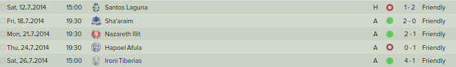 As you can see Ironi Kiryat Shmona won three, lost two. All of the results were fairly good results apart from the Hapoel Afula match where Locatelli stated that his side must be more clinical if the they are to be successful. The team opens their competitive season with ties in the Europa League and Toto Cup.
