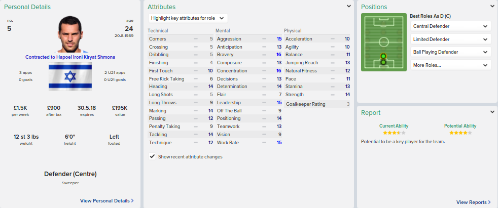 Ironi Kiryat's best defender has to be Shir Tzedek. Tzedek has already been capped 3 times by Israel and looks to earn his place in the national side before the European Championships in 2016. Guy Haimov in net is expected to have a good season for Ironi Kiryat, having been very impressive in the 13/14 season.