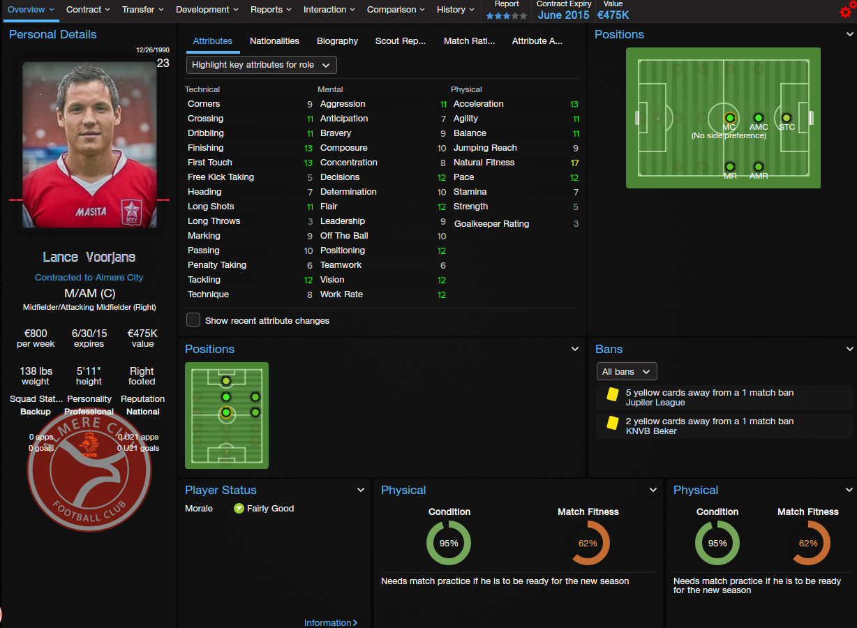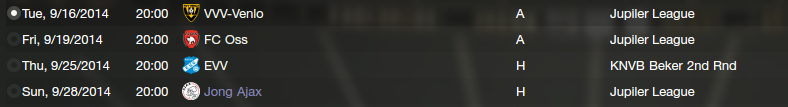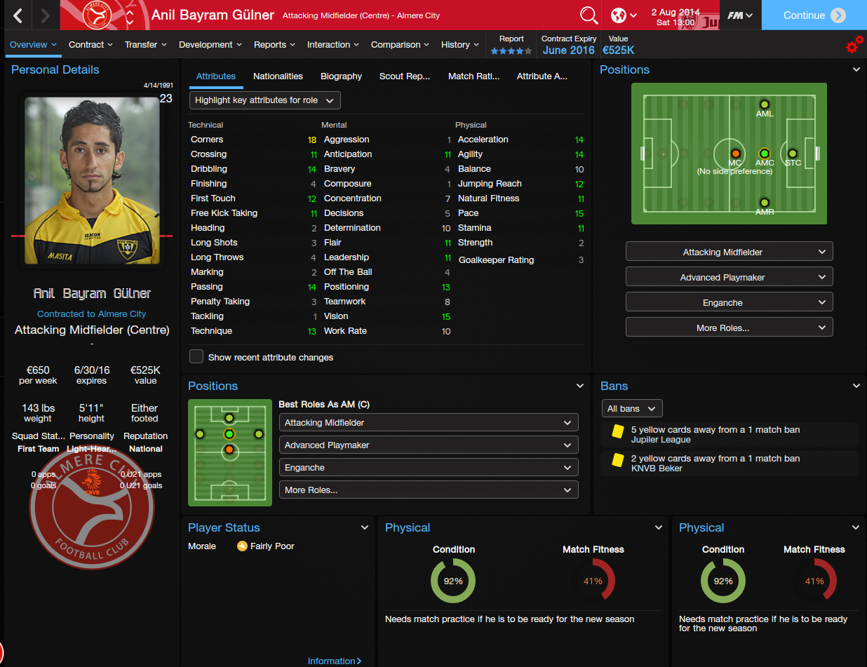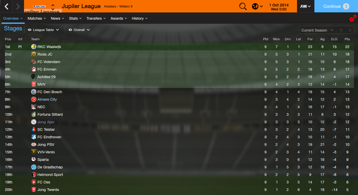I decided on Almere City, even though Telstar would've fit in more with the tactic I wanted to use. I liked Almere City's colors and logo better, and Almere City has an interesting story. Almere is the newest city in the Netherlands, and Almere City, the club, is a baby in terms of European football, aged only 13 years in 2014 when the save starts. It was borne out of Almere wanting to be prominent in sports, and the club used to be called Omniworld, although it thankfully got changed to Almere City a few years back.